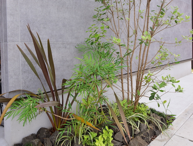 明るい玄関先にしようと植栽もお願いしました。背があまり大きくならなくて、葉っぱが丸い可愛らしい木を植えてもらいました。