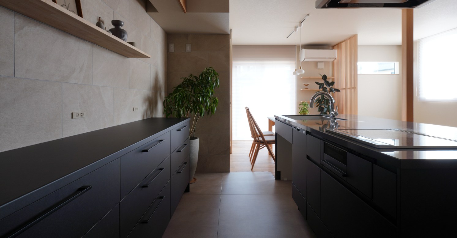 無垢材の床をベースに、室内の随所へ造作建具や造作収納を配置することで、自然素材の心地よさと現代的なデザインを両立させました。
