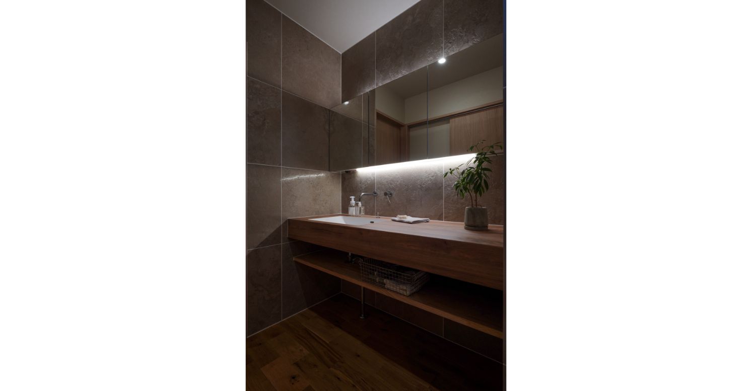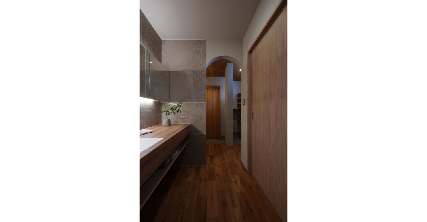 水回り動線の先に迎えてくれるのは、存在感のある造作洗面台。