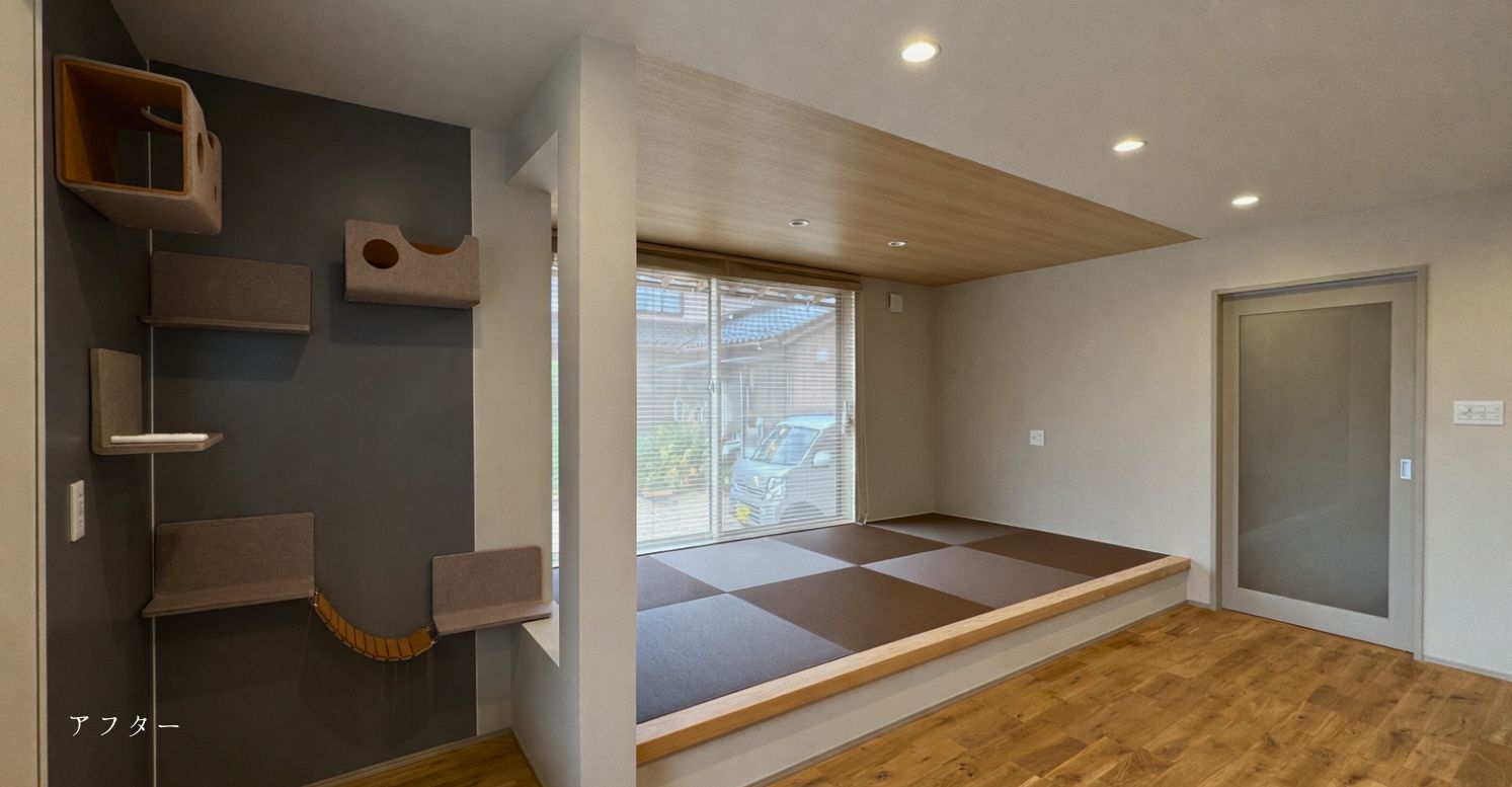 動きや居場所を考えた空間づくりにより、人もねこも心地よく過ごせる住環境を実現しています。