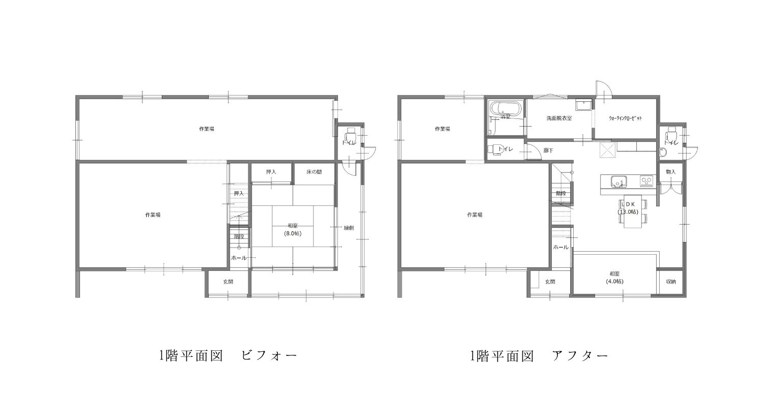 これまで作業場として使われていた建物を、一部住居用へとリノベーションした事例です。